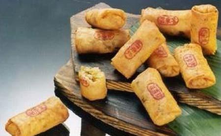 春餅也是潮州小食之佳品。其外觀呈長方形,金黃悅目,外酥內(nèi)嫩;味濃香溢,美味爽口。春餅古稱“春卷”,我們的祖先為祈豐收康樂吉祥幸福,便在立春日制作此食品祭天。